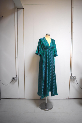 Om een bruiloft bij te wonen wilde deze klant graag een kaftan-achtige jurk van 100% moerbeizijde. Op basis van haar opgemeten maten heb ik een patroon gemaakt.
