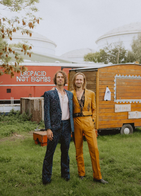 Afgestemd op de wensen van dit koppel heb ik er voor gezorgd dat de pakken voor verschillende gelegenheden gedragen kunnen worden en niet alleen tijdens hun bruiloft. Het geheel is feestelijk, kleurrijk en benadrukt de karaktereigenschappen van dit geweldige stel zonder te overheersen. -