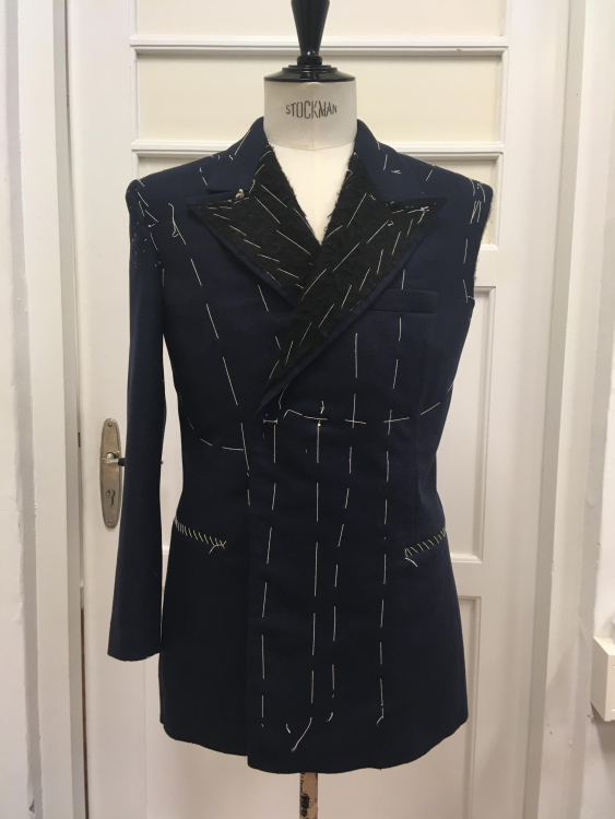 Project tijdens mijn opleiding: een op maat gemaakt colbert met de maten van een pasmodel. Op basis van een toile wordt het colbert aangepast tijdens een eerste en tweede fitting om zo de juiste pasvorm te krijgen.